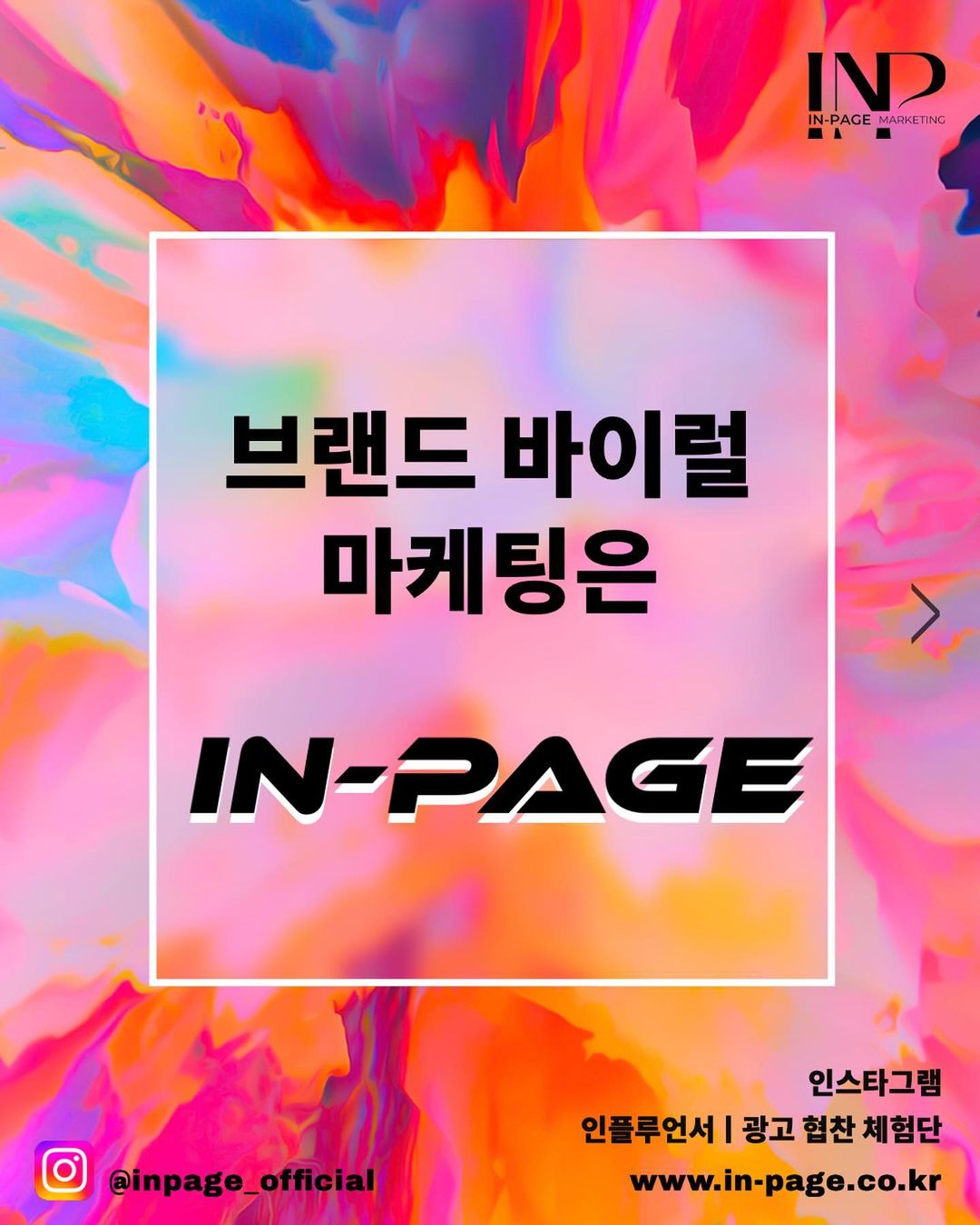 * 인페이지는 브랜드 이미지를 생각합니다. 많은 브랜드에서 인페이지와 처음으로 협업하면서 서비스 만족도 9.3점과 재계약율 82% 유지하고 있으며지속적으로 인페이지를 이용해주시고 있습니다. 채널 분야에 따라 영향력 높은 인플루언서로 모이며 단순한 숫자 채우기가 아닌 소비자 한분 한분께 인상적인 기억으로 남는 브랜드로 만드는 것 , 효율적이고 진정한 마케팅 효과를 실행 하는 것이 인페이지의 목표입니다. 많은 경험을 통한 마케팅 기법과 매순간 고민하고 끊임없이소통하여 브랜드를 함께 만들어 나가겠습니다.