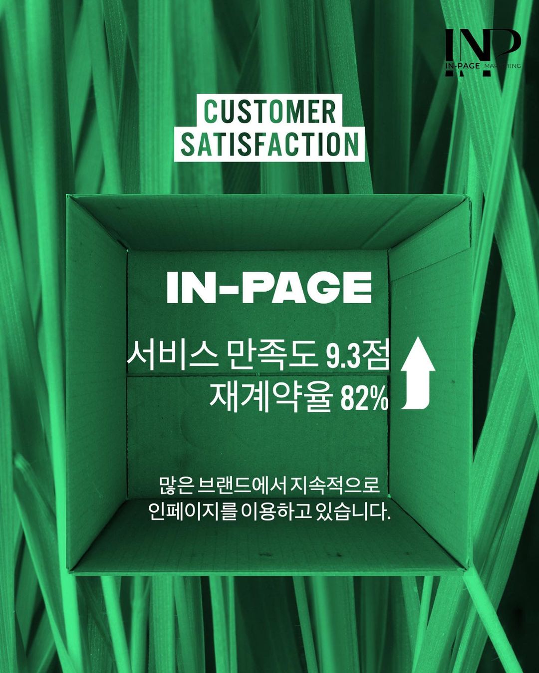 * 인페이지는 브랜드 이미지를 생각합니다. 많은 브랜드에서 인페이지와 처음으로 협업하면서 서비스 만족도 9.3점과 재계약율 82% 유지하고 있으며지속적으로 인페이지를 이용해주시고 있습니다. 채널 분야에 따라 영향력 높은 인플루언서로 모이며 단순한 숫자 채우기가 아닌 소비자 한분 한분께 인상적인 기억으로 남는 브랜드로 만드는 것 , 효율적이고 진정한 마케팅 효과를 실행 하는 것이 인페이지의 목표입니다. 많은 경험을 통한 마케팅 기법과 매순간 고민하고 끊임없이소통하여 브랜드를 함께 만들어 나가겠습니다.